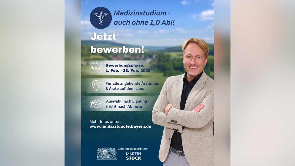 „Wir brauchen dringend Ärztinnen und Ärzte, gerade auf dem Land“, so Landtagsabgeordneter Martin Stock. „Die Gesamtzahl der berufstätigen Ärztinnen und Ärzte ist in den letzten Jahren massiv zurückgegangen. Dieser Trend wird sich durch Renten- und Ruhestandseintritte in den nächsten Jahren noch weiter verschärfen. Gleichzeitig nehmen die Aufgaben beim Schutz der Bevölkerung vor Infektionsgefahren zu und zusätzlich zu besetzende Stellen im Rahmen der Umsetzung des bundesweiten Pakts für den ÖGD aus dem Jahr 2020 erhöhen aktuell den Personalbedarf weiter“.