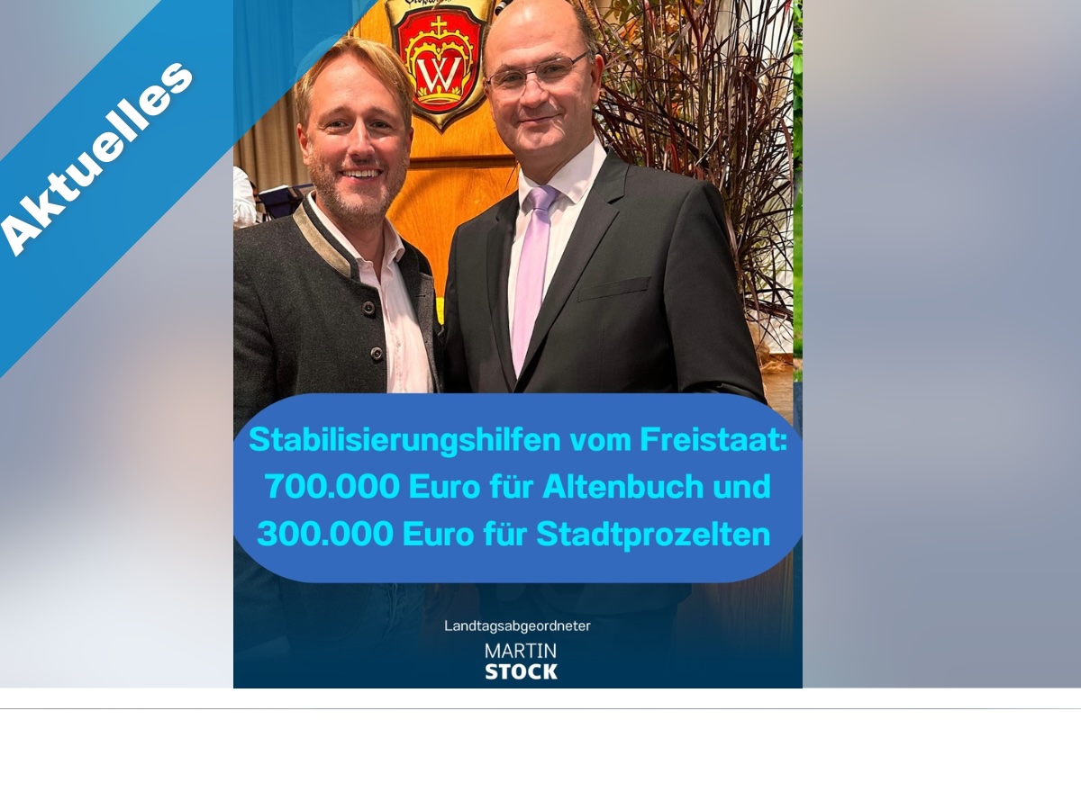 „Der Freistaat Bayern steht fest an der Seite seiner Kommunen – und verschafft ihnen zusätzlichen Spielraum“, sagt Landtagsabgeordneter Martin Stock. Der Regierungsbezirk Unterfranken erhält 2025 Bedarfszuweisungen und Stabilisierungshilfen in Höhe von 8,3 Millionen Euro. Davon fließen 1.000.000 Euro in den Landkreis Miltenberg. Die Gemeinde Altenbuch erhält 700.000 Euro und die Stadt Stadtprozelten 300.000 Euro. Das hat das Bayerische Staatsministerium der Finanzen und für Heimat heute bekanntgegeben.